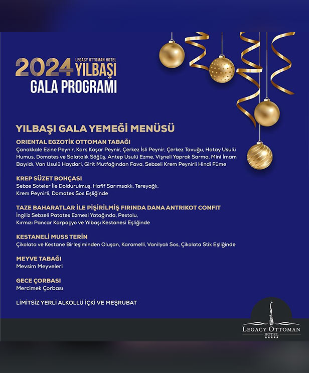 Legacy Ottoman Hotel 2024 Yılbaşı Program Menüsü