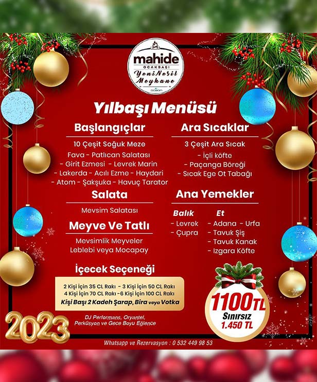Dolu dolu bir eğlence ve leziz özel yılbaşı menüsü ile Mahide Yeni Nesil Restoran’ın yılbaşı kutlamasını kaçırmayın.